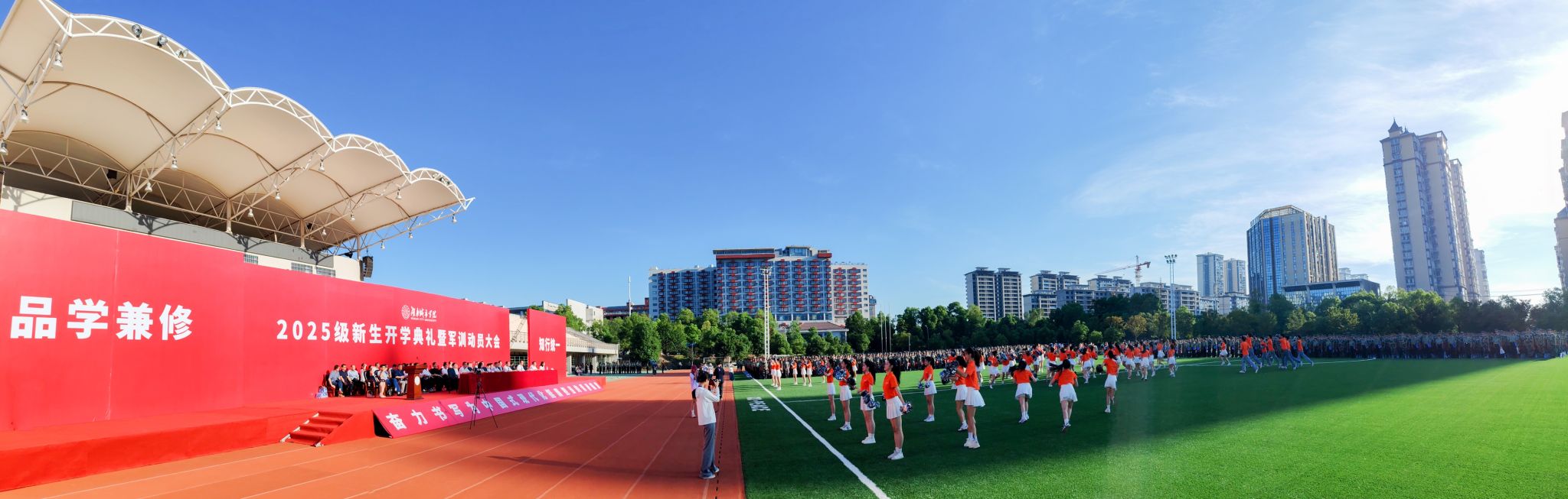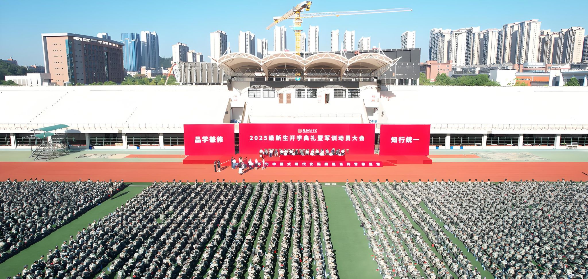 本网讯 苦尽甘来,十年寒窗终圆梦。乘风破浪,万里晴空任尔飞。9月17日上午,开云在线开户2025级新生开学典礼暨军训动员大会在学校东田径场举行,6600余名2025级本科生、研究生新生承载着殷切期望、怀揣着青春梦想,在城院开启人生新征程。校党委书记何振寄语2025级新生:要以“城”之名,砥砺报国,共织城市摇篮之美,充分认识、尊重、顺应城市发展规律,探索智慧城市建设新领域,在未来城市的画卷上留下青春注脚。
