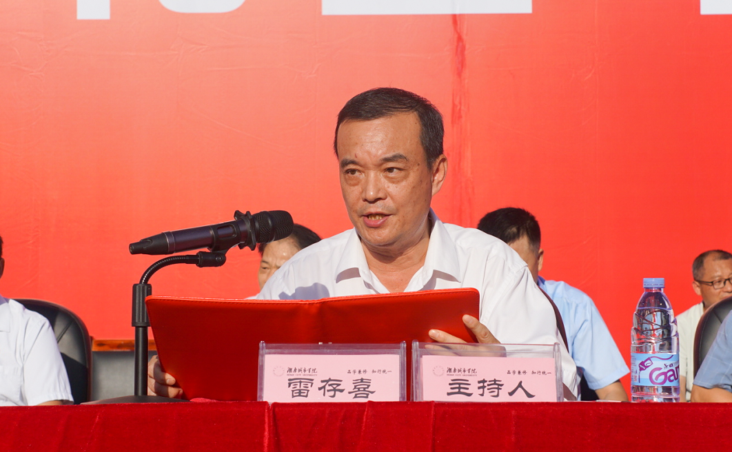 全体在家校领导出席开学典礼,学校各职能部门、二级学院负责人、教师代表参加。典礼由副校长雷存喜主持。