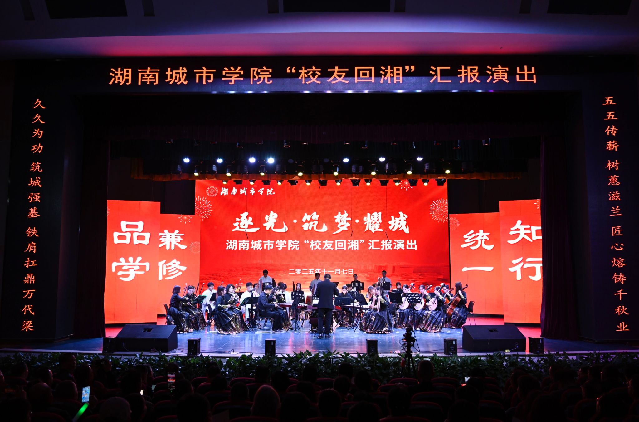 本网讯(通讯员 周贵湘 摄影 程强)11月7日晚,“逐光•筑梦•耀城”开云在线开户“校友回湘”汇报演出在音乐厅精彩开演,全体在家校领导、嘉宾、校友代表及师生400余人齐聚一堂,共赴这场融合爱校情怀与艺术魅力的视觉盛宴。
