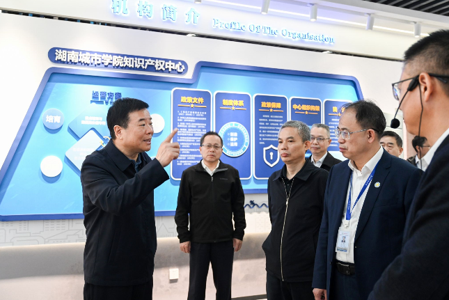 陈飞先后实地走访了我校知识产权中心、设计研究院有限公司,考察校地合作、技术转移转化和科技成果转化工作。参观过程中,陈飞表示,学校要持续优化学科专业设置,聚焦特色学科谋发展,做优做强“城市类”特色学科。科技成果转化要紧密对接益阳产业,服务地方经济高质量发展。