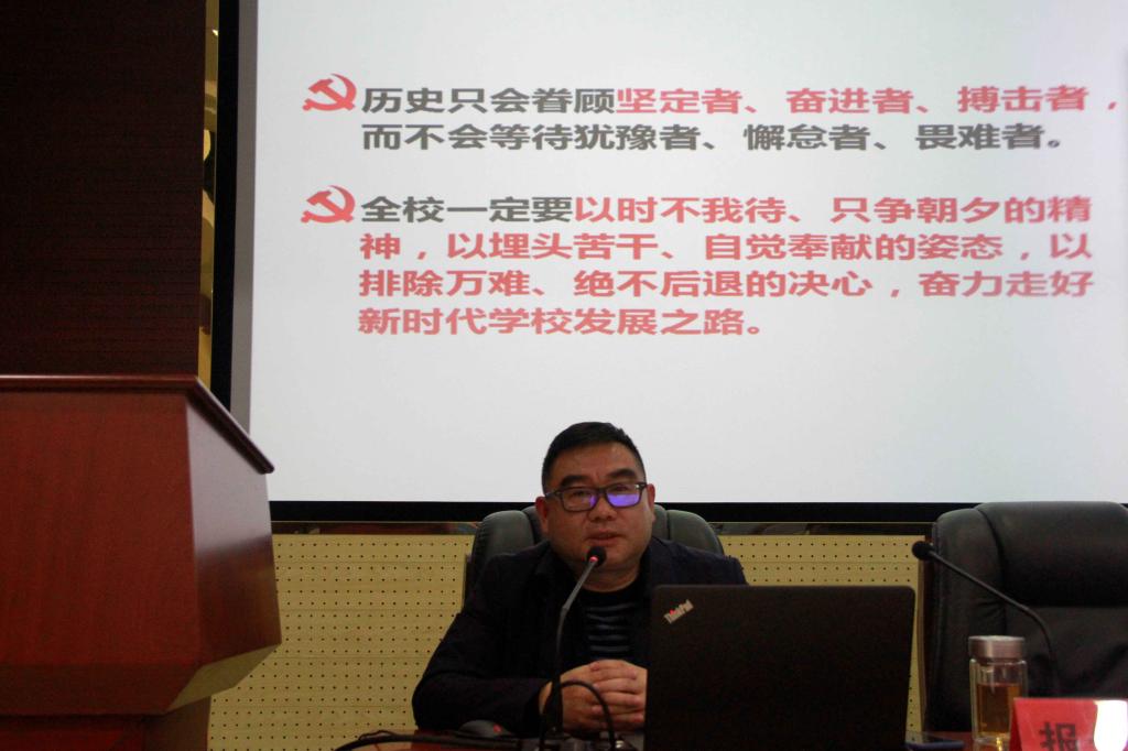 郑卫民最后讲到,对标新目标我们的事业仍任重而道远,他引用习近平总书记讲话“历史只眷顾坚定者、奋进者、搏击者,而不会等待犹豫者、懈怠者、畏难者”,号召广大党员干部紧密团结在以习近平为核心的党中央周围,以习近平新时代中国特色社会主义思想为指导,以时不待我、只争朝夕的精神,埋头苦干、自觉奉献的姿态,以排除万难、决不后退的决心奋力走好新时代学校和产业发展之路;努力谱写新时代学校发展、校办产业发展新篇章。