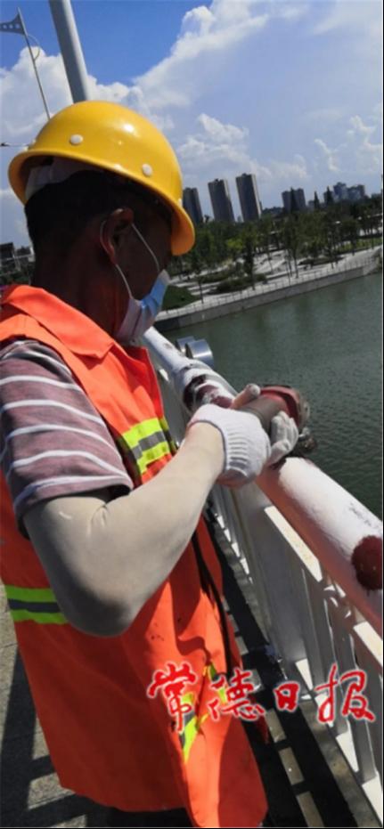 常言道:“小洞不补,大洞二尺五”,城市桥梁养护工作繁杂琐碎,有路面排查、伸缩缝清理、坑槽修补、警示标牌更换、除锈刷漆等,这些看似平常的事情,作用却不寻常。8月12日,记者走近常德市桥梁管理处的桥梁养护人,感受他们在高温“烤”验下的桥梁养护工作。