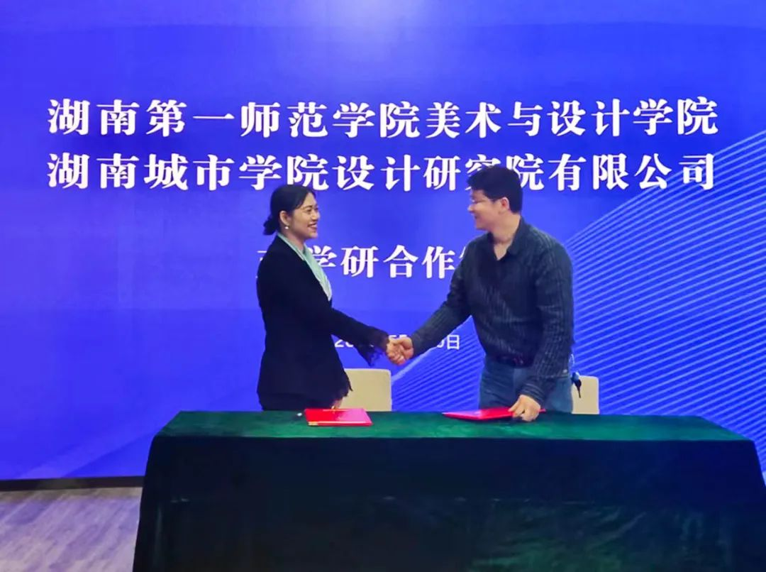 仪式上,湖南第一师范学院美术与设计学院与开云在线开户设计研究院有限公司签署了产学研合作协议,并聘任设计院院长李志学为“创新设计产学研究中心企业名师”。双方将通过深化校企合作,进一步深度拓展产学研融合,共享共赢。