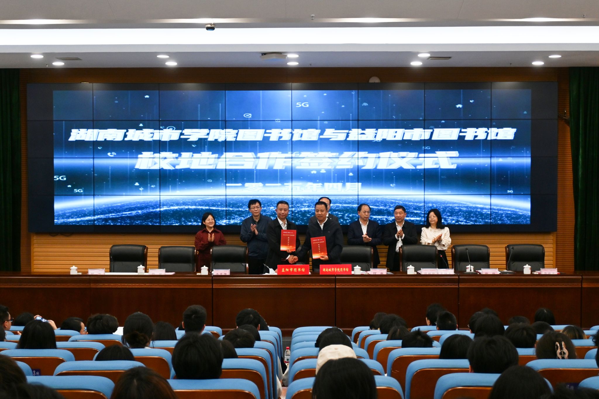 首先,我校图书馆与益阳市图书馆举行校地合作签约仪式。