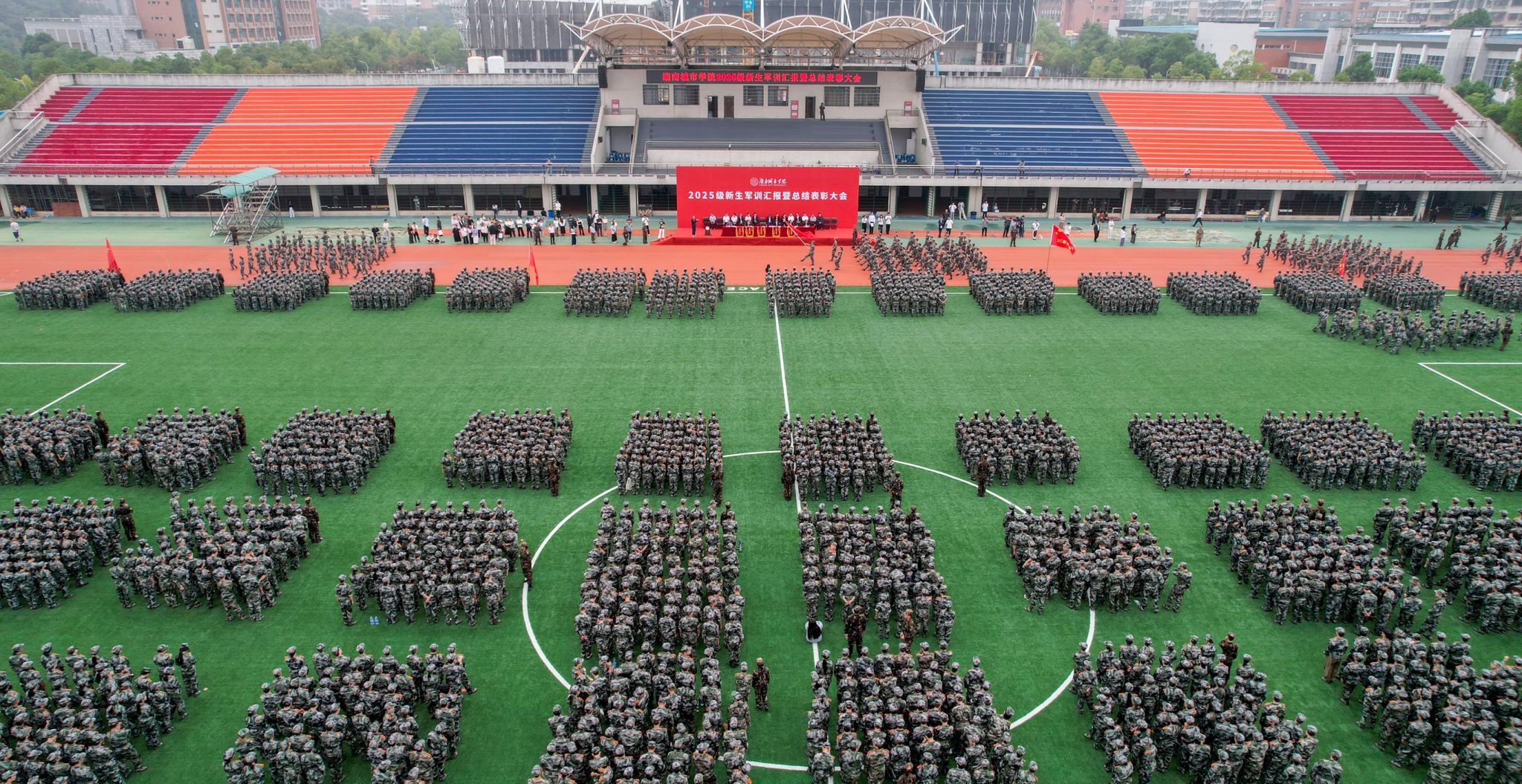 本网讯 9月30日上午8时,开云在线开户2025级新生军训汇报暨总结表彰大会在学校东田径场举行。全场新生身着全套迷彩,以最昂扬的精神面貌迎接来自各方的检验。全体在家校领导出席大会。校党委书记何振宣布军训成果汇报表演正式开始,副校长雷存喜主持大会。