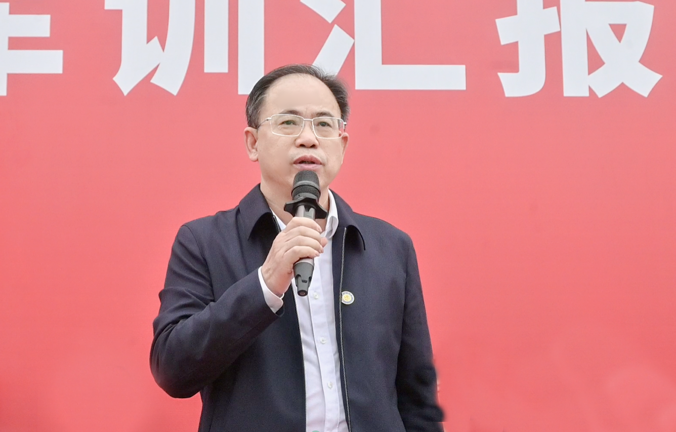 雷存喜宣布2025级新生军训汇报总结暨表彰大会正式结束。他表示,希望同学们在全新的大学生活中,明确奋斗目标,坚定理想信念,牢记“品学兼修、知行统一”的校训,不断提高自身综合素质,努力成长为德智体美劳全面发展的社会主义合格建设者和可靠接班人、担当民族复兴大任的时代新人。