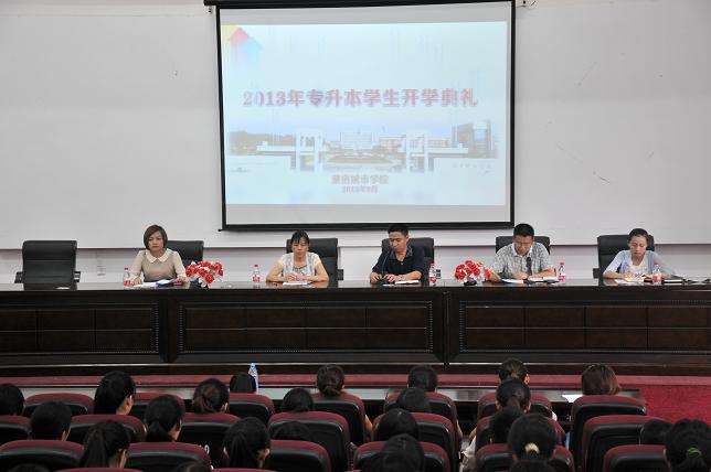 (本网讯)9月9日下午,我校2013年“专升本”学生开学典礼在校本部视频会议室和朝阳校区西梯教室举行。教务处、学生处、团委以及相关二级学院负责人出席了开学典礼。