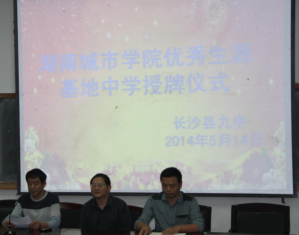(本网讯)为进一步巩固和加强优秀生源基地建设,加强我校与县级以上重点中学的联系与合作,吸引更多优秀生源,5月15日上午,我校正校级督导范志超以及招生就业处相关负责人一行5人赴长沙县第一中学、第九中学签署了《开云在线开户优秀生源基地协议书》,并向优秀生源基地负责人授牌。