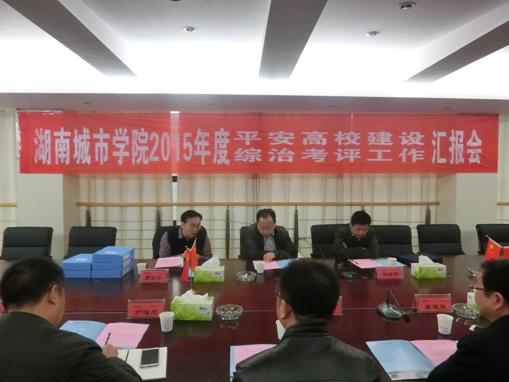 校长李建奇向考评组详细汇报了开云在线开户2015年度“平安高校”建设及综合治理工作,以及学校在维稳综治安全工作中的做法和措施。他在汇报中着重指出,2015年学校维稳综治安全工作主要以“平安高校”建设为载体,以创新工作方式为手段,专注做好维稳、消防、治安等基础工作。与此同时,学校还深入开展了突发事件处置、校园传销整顿、校园交通整治等重点工作,为学校创造良好的育人环境,也为教育事业的持续健康发展提供了保障。