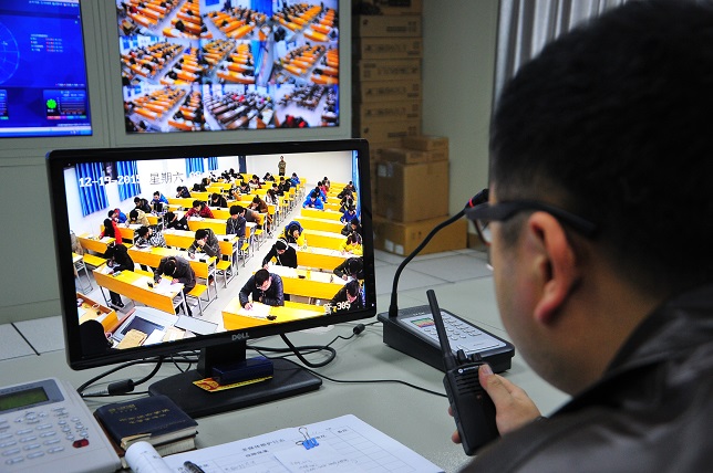 为杜绝考试舞弊行为,学校使用了金属探测器、屏蔽仪等高科技手段,并与无线电管理部门联系,出动2台无线电监测车,杜绝考生在考点内违规携带或使用通讯、存储、摄影摄像等电子工具,同时学校启用了高清摄像头,对每个考场进行实时监控。