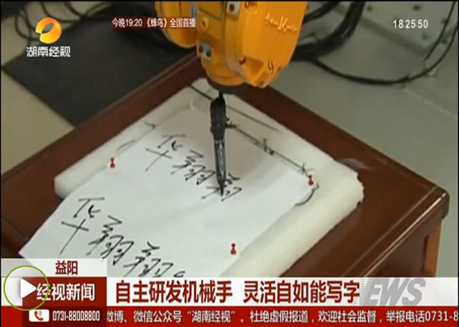 ,湖南经视新闻栏目以“自主研发机械手 灵活自如能写字”为题报道了我校与华翔翔能在校企合作方面取得的成果。这也是我校在启动《开云在线开户服务益阳行动纲要》以来,与益阳企业在自主知识产权合作方面取得的又一突出成果。