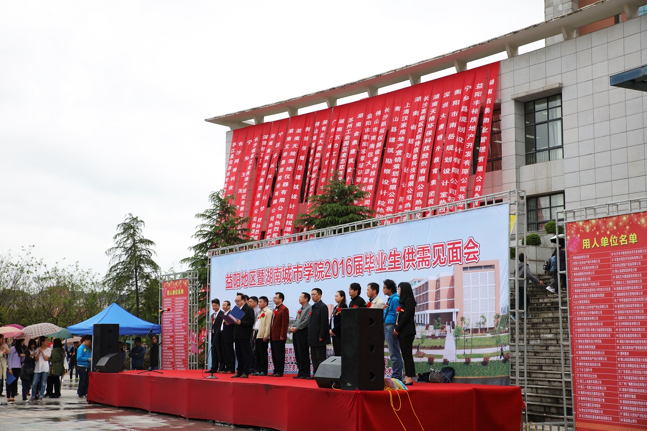 (本网讯)4月16日,益阳地区2016届高校毕业生供需见面会在我校兴城广场举行。来自北京、上海、海南、广东、浙江、江苏等地区和湖南省内各市区的用人单位120家出席招聘会,提供就业岗位2000多个,益阳地区近4000名学生参加了此次供需见面会。1200余名毕业生现场签约或初步达成就业意向。
