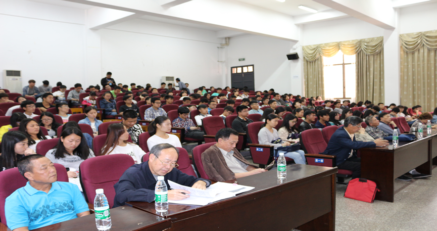讲座在学生活动中心举行。学校关工委成员、各二级学院关工委副主任以及学生干部代表300余人现场聆听了讲座。讲座由马克思主义学院副院长何军新主讲。