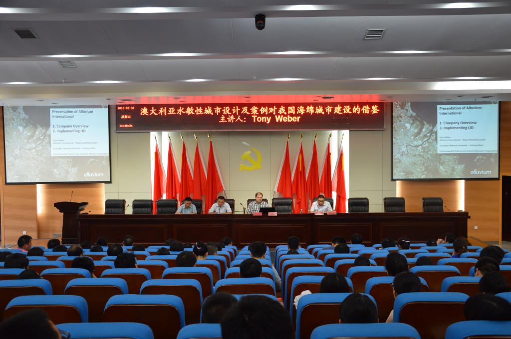 在近两个小时的讲座中,Tony教授以翔实的数据和生动的案例,着重介绍了Source软件在流域水调控中的应用和Music软件在LID低冲击或水敏性城市设计中的应用,介绍了城市雨水分散处理的方法和实例、城市饮用水评级管理方法和实例等,并与参会人员针对相关技术问题进行答疑和深入探讨。