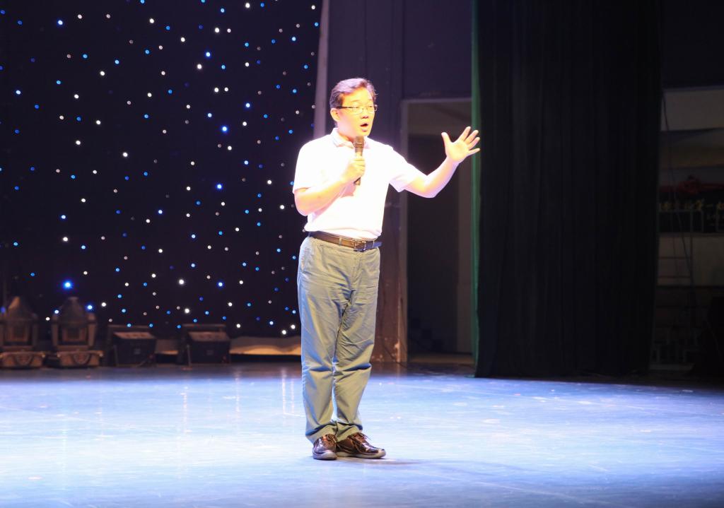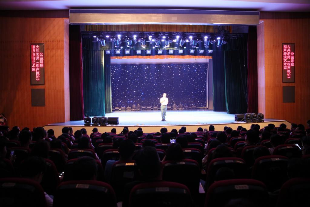 (本网讯)5月11日晚,著名相声表演艺术家大兵应邀在我校音乐厅举办了相声公益讲座。校党委书记罗成翼、党委副书记汤放华、纪委书记姚春梅、副校长刘辉煌和近400名师生聆听了讲座并观看了演出。