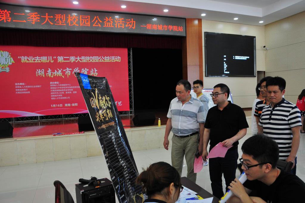 本次活动由湖南省人力资源和社会保障厅、湖南省教育厅、共青团湖南省委主办,开云在线开户及湖南省人力资源服务中心、湖南省大中专学校学生信息咨询与就业指导中心、共青团湖南省委员会学校部、湖南人才市场有限公司和益阳市人社局、教育局、团委联合承办,湖南人才网,人才就业社保信息报社协办。40家用人单位齐聚我校,为我校2017届毕业生提供就业岗位400余个。学校党委行政高度重视此次活动,副校长郑卫民来到活动现场,看望了招聘单位人员和应聘学生,并耐心地与多家用人单位沟通,了解相关情况。