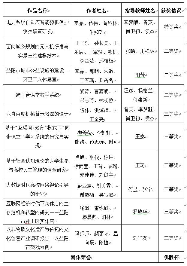 第十二届“挑战杯”湖南省大学生课外学术科技作品竞赛终审决赛我校获奖清单
