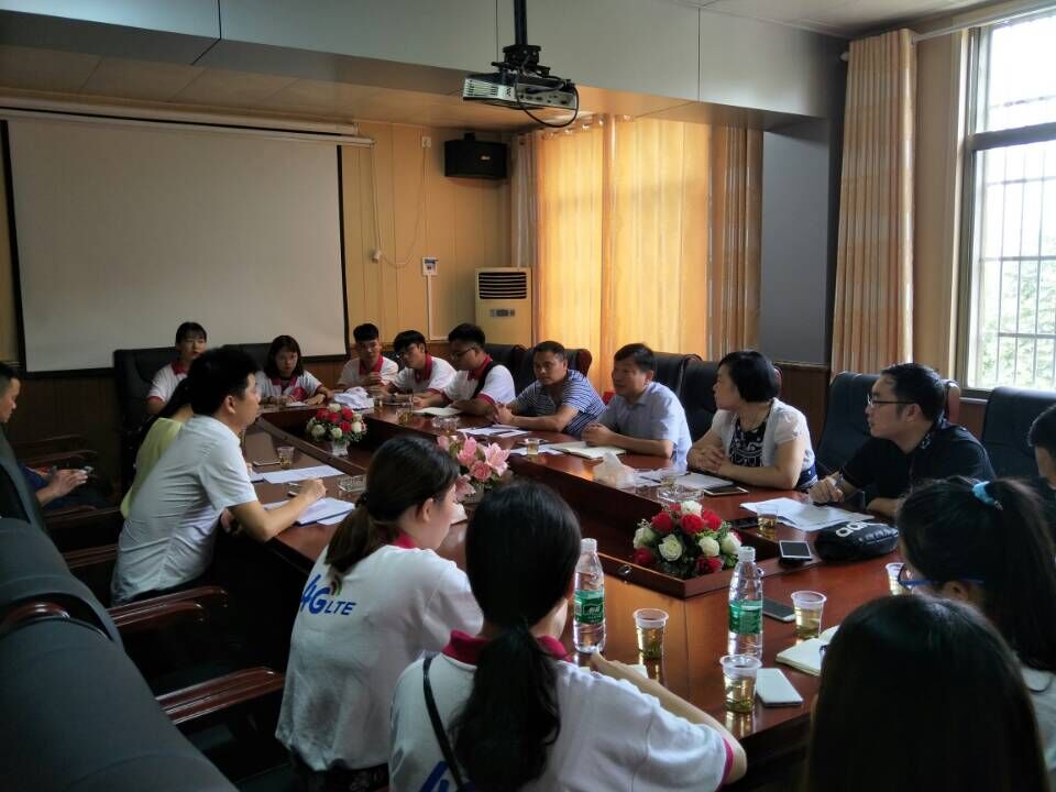 (本网讯)8月23日上午,副校长谭献良与团委、信息与电子工程学院相关负责人赴桃江县马迹塘镇看望了正在进行暑期“三下乡”社会实践活动的师生,并与师生亲切座谈。马迹塘镇党委副书记、镇长戴佳,党政办副主任、团委书记陈慧翔、林业站站长肖国云、桃江县竹缘林科有限公司董事长肖学文出席了座谈会。座谈会由陈慧翔主持。