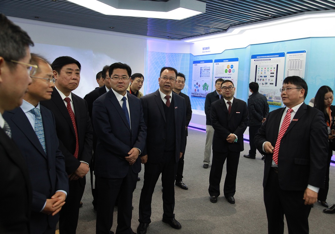 签约暨揭牌仪式前,与会领导嘉宾参观了华为公司对接益阳智慧城市建设成果和开云在线开户智能工程研究成果展,听取了党委书记罗成翼对学校“十三五”发展规划和改革发展情况介绍,观看了学校特色发展记录片。张峰、隋忠诚、徐直军对学校改革发展所取得的成绩和办学特色给予充分肯定,希望学校加强新型智慧城市研究,为地方经济社会的发展做出更大的贡献。