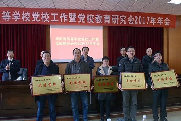 (本网讯)近日,省委教育工委对全省高校先进党校进行了表彰,我校党校被授予“湖南省普通高等学校先进党校”荣誉称号。此次全省共有11所本科院校党校、5所高职高专学校党校受到表彰。