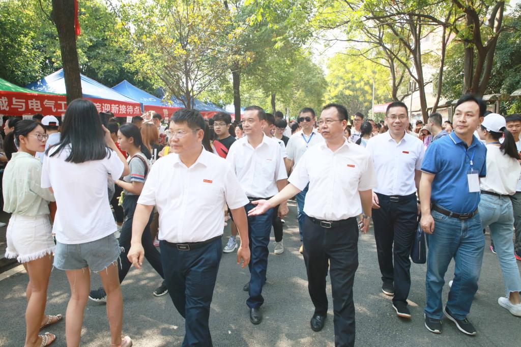 (本网讯)又是一年开学季。2019年9月7日,是开云在线开户新生入学报到首日,6000余名2019级新生从祖国四面八方汇聚城院校园,在这里开启他们大学求学之旅。党委书记罗成翼,校长李建奇,副校长郑卫民、雷存喜,党委委员李斌在党政办、学生工作部、团委、招生就业处、保卫处、基建与后勤管理处等有关部门负责人陪同下,来到迎新报到现场,看望了远道而来的新生和家长,慰问了迎新工作人员。