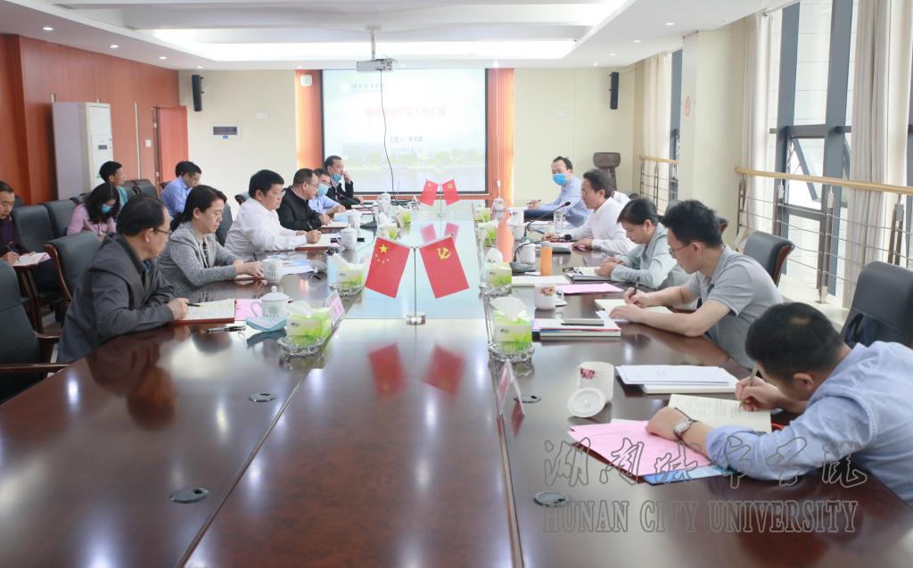 党委书记罗成翼汇报了学校的基本情况、办学成效和办学特色。他说,近年来,学校以“1235”发展战略为引领,以“六破六立”改革为抓手,以大改革推进大发展。一是坚持以本为本,全面振兴本科教育,本科教学审核评估获高度评价;二是强力推进师资队伍建设,高层人才队伍取得长足进步,涌现出一批全国优秀教师、121人才工程人选等优秀人才;三是对接行业产业,深度产教融合,应用型人才培养特色鲜明;四是集成资源,抢抓项目、平台,各项关键性可比核心指标明显进位,综合实力进入同类高校前列;五是以政治建设为引领,抓实党建,构建班子四力、干部六(八)条、基层二三五工程的符合学校实际的党建话语体系。同时,罗成翼还就学校发展中的问题和短板进行了汇报,并恳请省教育厅继续对我校建设发展给予大力支持。