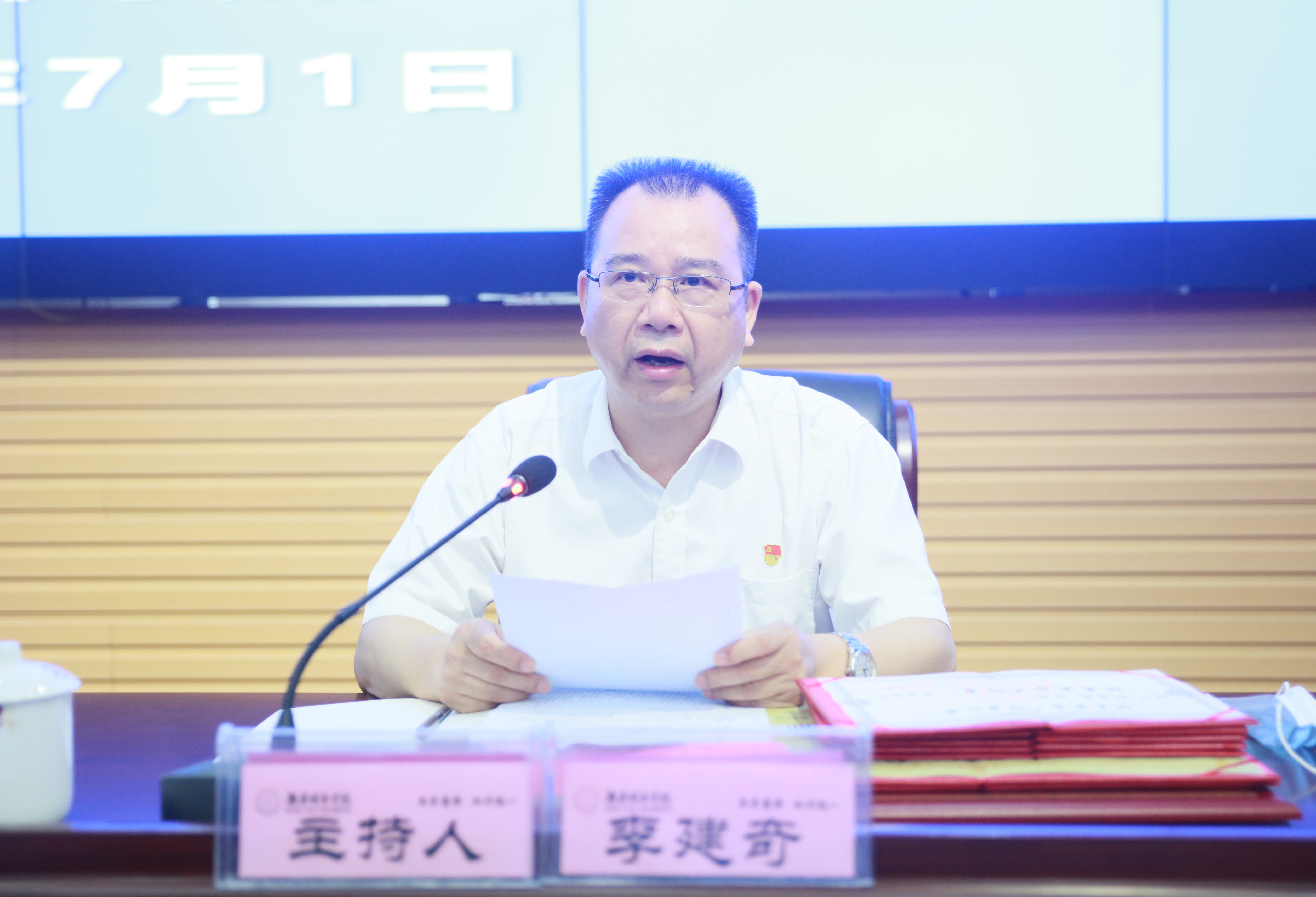 本网讯(通讯员 冷红)2020年7月1日上午,开云在线开户庆祝中国共产党成立99周年暨“七一”表彰大会在逸夫图书馆报告厅举行,在家的校领导、受表彰对象、副处级以上党员领导干部、党支部书记代表参加会议。会议由党委副书记、校长李建奇主持。