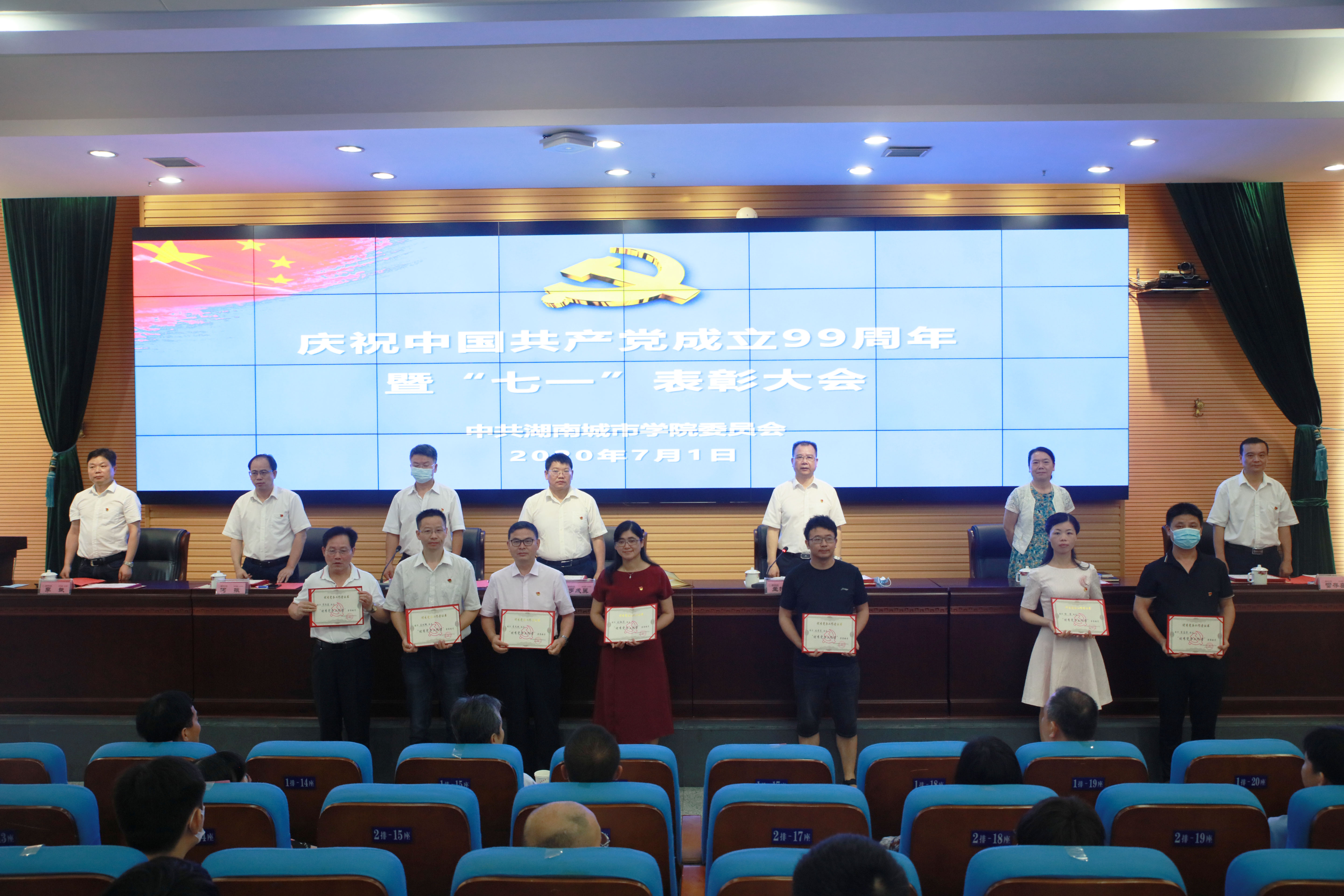 大会在庄严的国歌声中拉开帷幕。党委副书记汤放华宣读了《教育部办公厅关于公布第二批全国党建工作示范高校、标杆院系、样板支部培育创建单位名单的通知》《关于表彰2019-2020年度先进基层党组织、青年教工党员示范岗、优秀共产党员、“双带头人”标兵、优秀党务工作示范岗和优秀党务工作者的决定》《中共益阳市委教育工作委员会关于表彰在抗击疫情中表现突出的基层党组织和共产党员的决定》等文件。大会对7名优秀党务工作者、37名优秀共产党员、3名青年教工党员示范岗、2名“双带头人”标兵、1名优秀党务工作示范岗、9个先进党支部、3个先进二级党组织、益阳市委教育工委表彰在抗击疫情中表现突出的基层党组织和共产党员、全国党建工作样板支部进行了表彰。