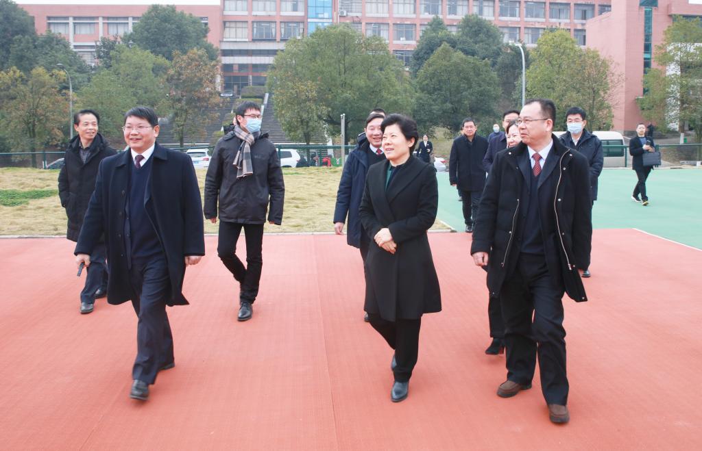 随后,吴桂英一行来到我校刚投入使用不久的东田径场,看望了正在上体育课的学生。“学校田径场真漂亮!青年学生很有朝气!”步行在焕然一新的橡胶跑道上,吴桂英称赞。她希望学校加强体育场馆和设施的建设,大力发展素质教育,构建德智体美劳全面发展的人才培养体系。