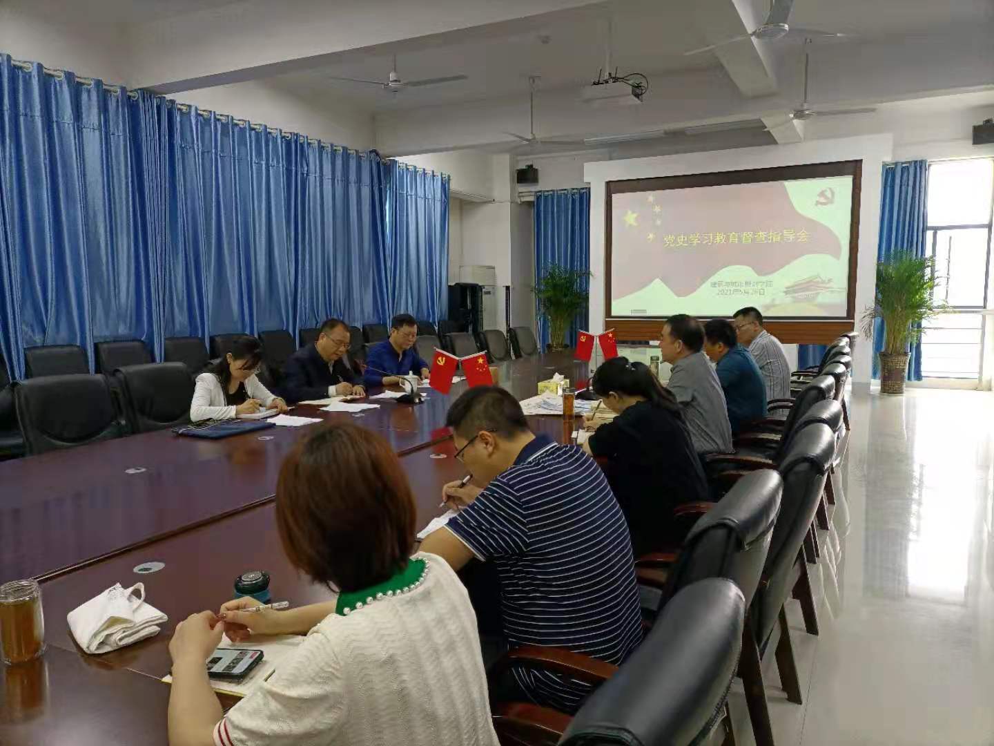 本网讯 2021年5月26日,学校党委书记李建奇深入二级学院检查指导党史学习教育开展情况。党委宣传部常务副部长夏建文陪同检查。