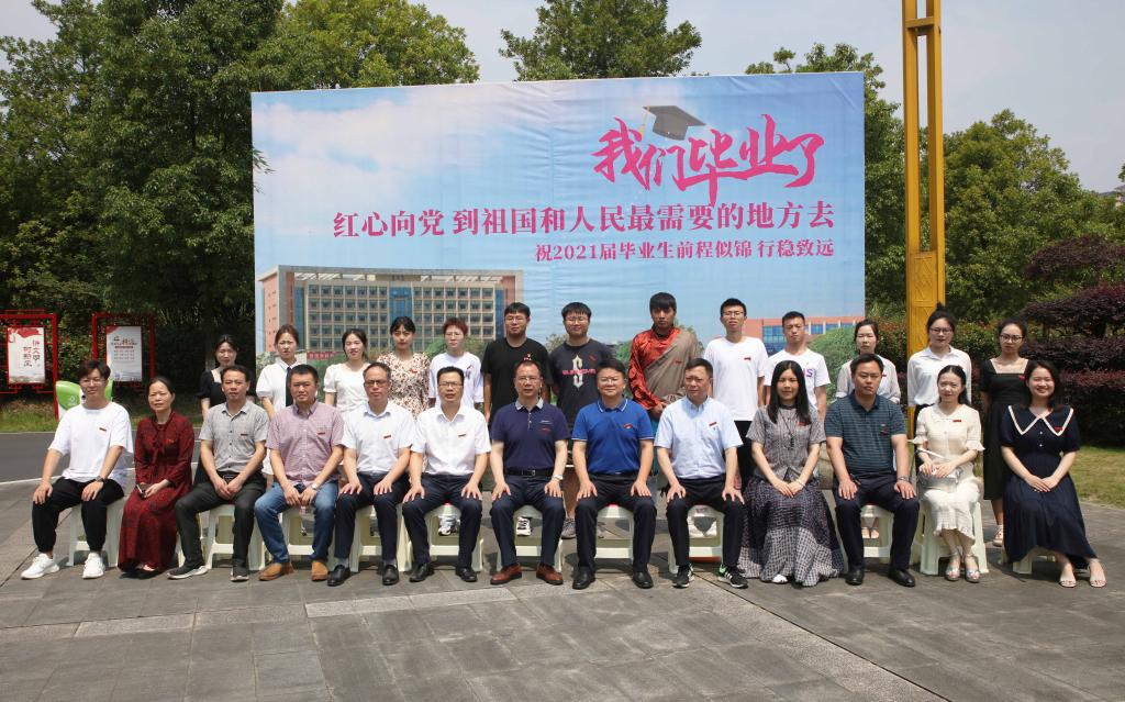 与会领导为毕业生代表合影。