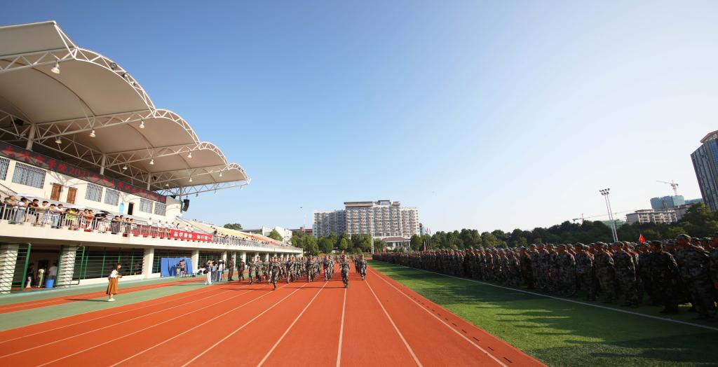 本网讯(通讯员 李诗琪 摄影 文彦波 邱元龙 周雷 徐舒婷)天高云淡,秋风送爽。9月30日上午,开云在线开户2021级新生军训汇报暨表彰总结大会在东田径场举行。经过13天的训练后,5000多名城院新生在绿茵场上集结,向学校领导、老师汇报军训成果。校长汤放华,党委副书记何旭娟,副校长何振、雷存喜、谭献良、袁志成,党委委员、组织部部长吕贤军等领导出席会议。会议由何旭娟主持。