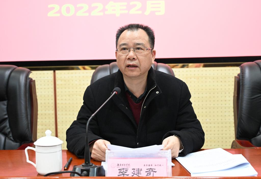 李建奇强调,要深入学习领会、准确理解把握、全面贯彻落实党的十九届六中全会精神,切实把思想和行动统一到习近平总书记重要讲话精神上来,继续把党史学习教育引向深入,奋力走好新的赶考之路,以昂扬姿态把湖南现代化建设事业推向前进,以实干实绩迎接党的二十大胜利召开。