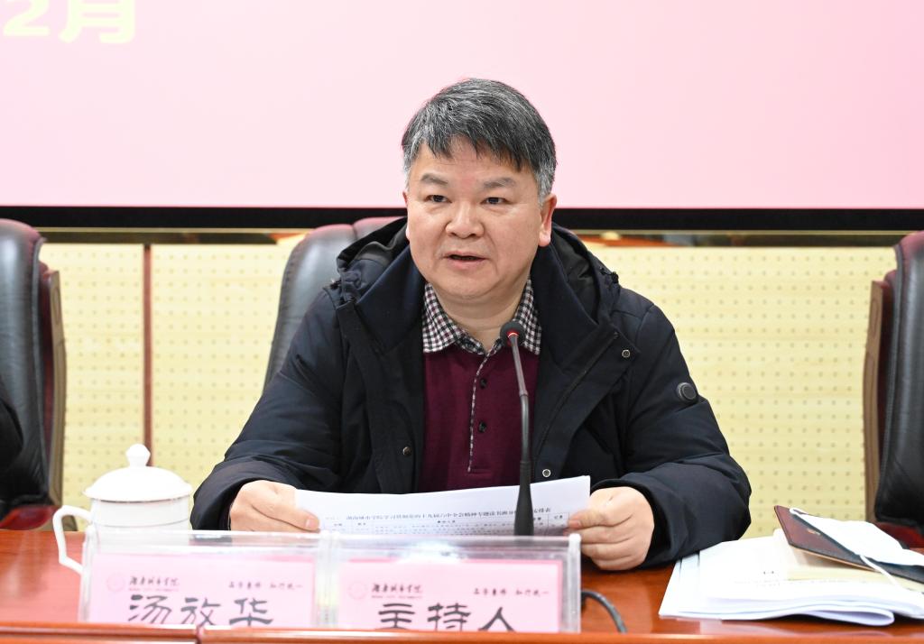 本网讯(记者 文彦波)2022年2月24日-26日,我校举行学习贯彻党的十九届六中全会精神专题读书班。党委书记李建奇出席并讲话,党委副书记、校长汤放华主持开班式和结业式。全体校领导、副处级以上领导干部参加读书班。