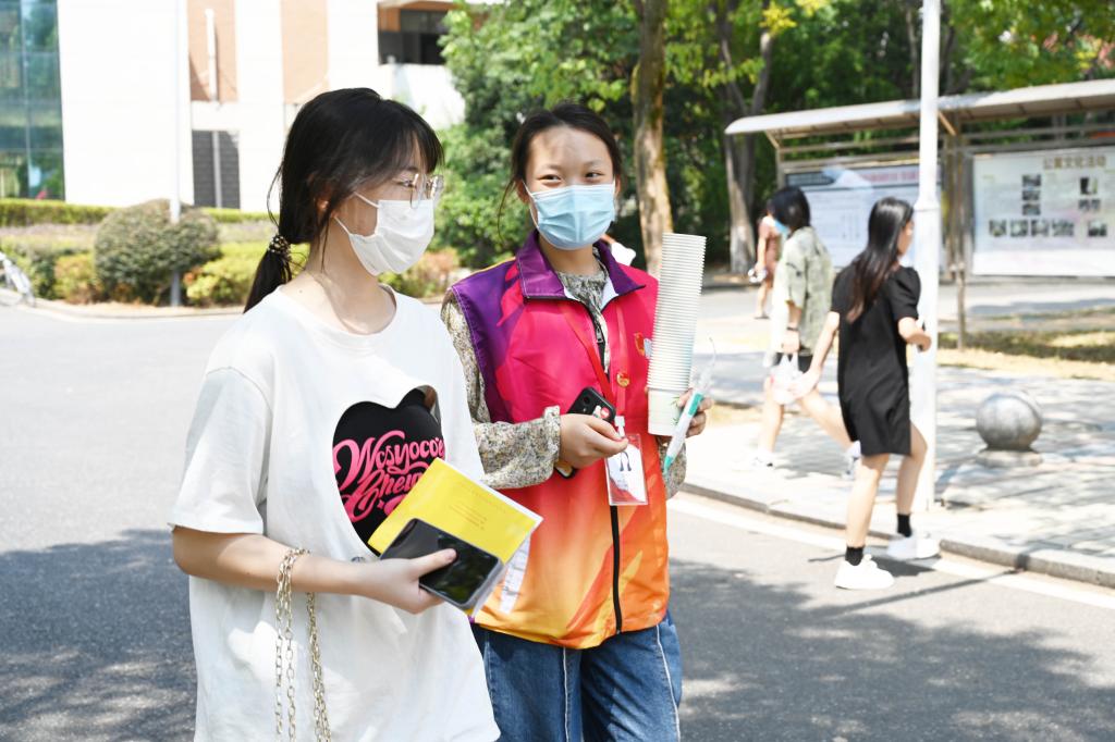 早上8点不到,学校校门口就已是人潮涌动。扫场所码、测量体温、查验健康码行程码、出示48小时内核酸检测阴性证明和录取通知书……在学校东、南、西、北四个校门处,“新橙子”们间隔1米排着长队,从临时搭建的报到通道中依次进入校园,并在志愿者的引导和帮助下前往迎新报到处。