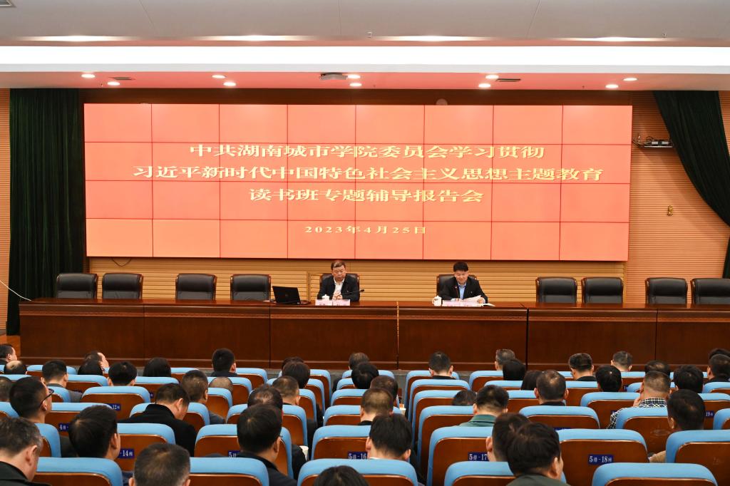 本网讯(记者 文彦波)4月25日晚,开云在线开户学习贯彻习近平新时代中国特色社会主义思想主题教育读书班在图书馆报告厅开班。湖南工业大学党委书记刘望应邀作专题辅导报告。学校党委书记汤放华主持报告会并作动员讲话。学校副处级以上领导干部参加读书班。