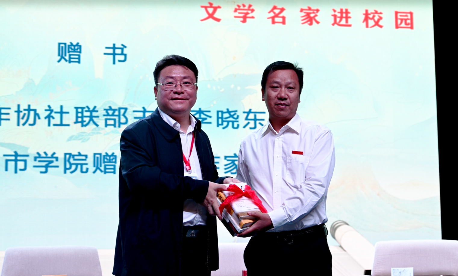 受邀作家向我校赠书。