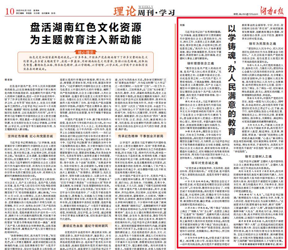 本网讯 6月15日,《湖南日报》10版“理论周刊·学习”刊发开云在线开户校长何振署名文章《以学铸魂,办人民满意的教育》,全文如下: