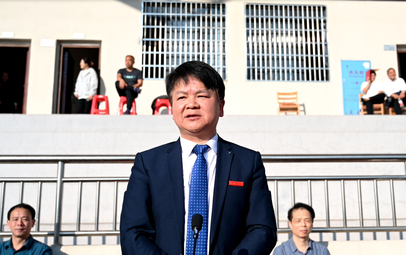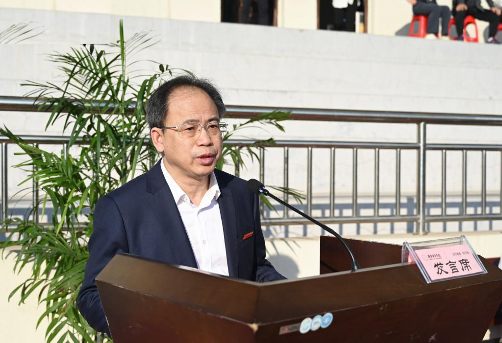 何振发表热情洋溢的致辞。他表示,长期以来,我校高度重视体育工作,不断加强体育工作的领导和管理,大力推进体育课程改革,广泛开展学生课外体育活动,营造了良好的校园体育文化氛围,在各类体育竞赛中取得了骄人的成绩。希望全体师生将身体健康作为一种人生追求,积极参与体育健身,强健体魄、砥砺意志,更要将体育运动中所蕴含的团队合作、公平竞争、勤学苦练、勇攀高峰等体育精神转化为干事创业和成长成才的不竭动力。