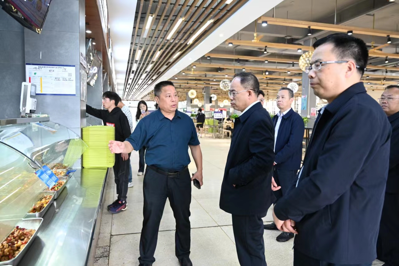 何振一行检查了学校食堂,重点就食材采购、储存、加工、留样、餐具清洗消毒、设备设施清洁维护、有害生物防治等关键环节的管理进行检查,并对食堂从业人员健康管理、食品加工场所环境卫生、食品储存条件以及采购索票索证等进行了现场督查。
