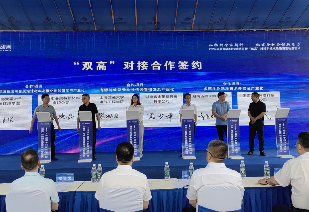 活动现场开展了湖南省高性能碳基材料研发及产业化应用创新联合体签约、“双高”对接合作签约、银企知识价值信用贷款签约等3轮签约。