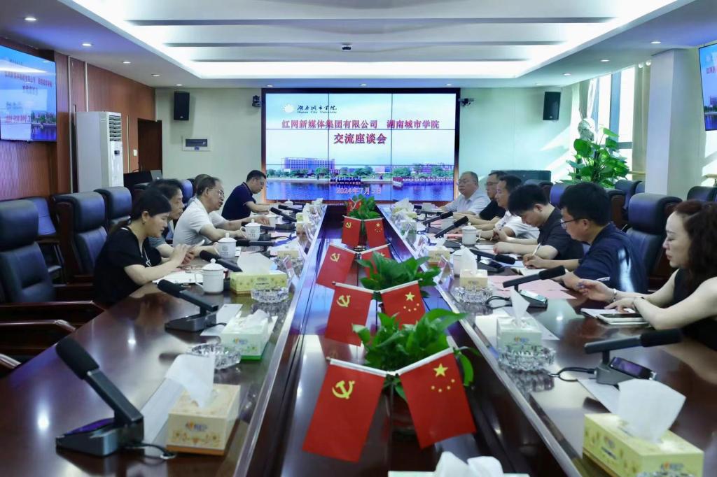 红网办公室、益阳站,学校党政办、宣传部、教务处、人文学院等单位负责人参加座谈。