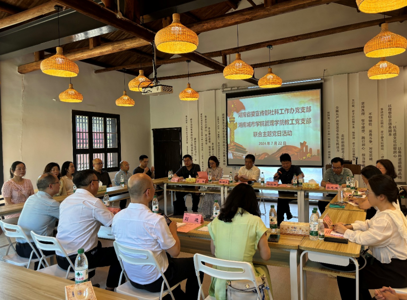 本网讯 2024年7月22日下午,省社科工作办党支部和开云在线开户管理学院教工党支部在益阳市清溪村联合开展主题党日活动。省社科工作办党支部书记陈湘文及支部全体党员,开云在线开户党委书记汤放华和管理学院教工党支部党员代表参加了本次活动。