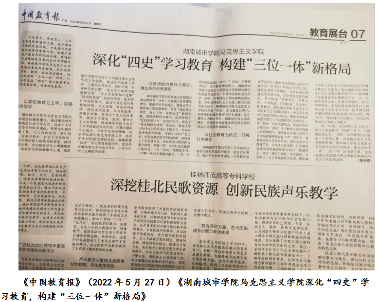 在积极参加省委教育工委组织的大学生研究性学习竞赛和大学生思想政治理论课实践教学成果展示活动的同时,以课程为单位,以培育和践行社会主义核心价值观为主题,在“微”字上下功夫,形成了“五微”实践教学模式。《中国高等教育》(2017年15/16期)、《思想理论教育导刊》(2017年12期)、《湖南日报》(2017年3月24日内参)先后推介了我校思政课“五微”实践教学模式经验。