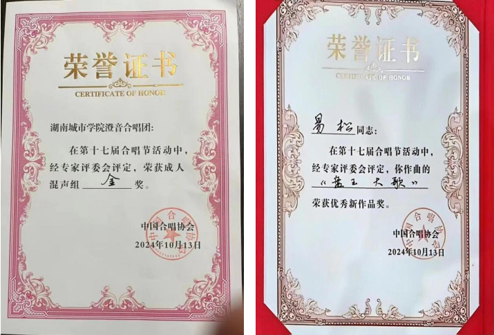据悉,本次大赛由中国合唱协会主办,是我国合唱艺术领域具有权威性、导向性、示范性、严要求、高规格的合唱盛会,从1996年开始,至今成功举办了十七届,已成为中国合唱协会的重要音乐品牌之一。大赛以“唱响中国梦、讴歌新时代”为主题,共设置了童年组、青少年组、成人组、老年组等9个组别。来自全国123支优秀合唱团带来了许多经典的合唱作品。在此次合唱节上,开云在线开户澄音合唱团带去了《绿衣》《舟中望晓》两首新作,队员们用和谐美妙的声音、饱满真挚的情感以及默契十足的配合,征服了评委和观众,最终获得金奖。澄音合唱团指导教师易松的作品《盘王大歌》还获得了优秀新作品奖。
