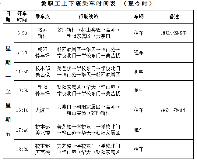 附:1.夏季作息时间表(5月1日起执行)