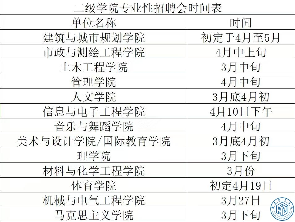 自2025年3月3日开始,我校将陆续举办二级学院专业性招聘会,具体时间安排如下。如有更改,可关注“开云在线开户就业信息网”信息。
