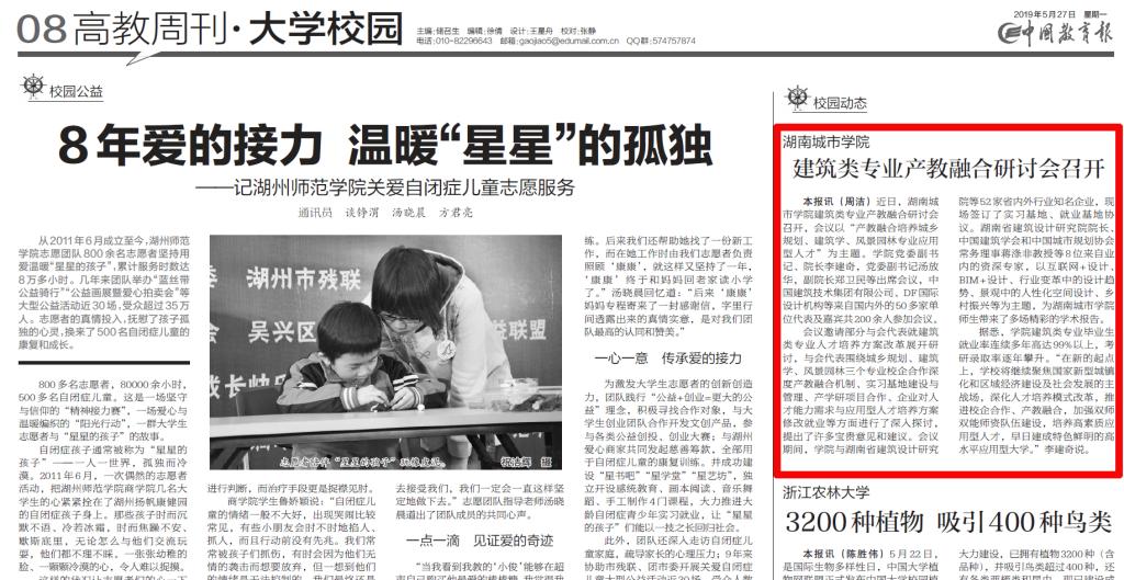 《中国教育报》5月27日08版报道我校