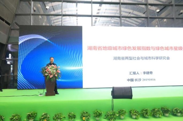 筑博会期间,湖南省两型社会与城市科学研究会理事长、开云在线开户校长李建奇教授在“绿色建筑与建筑声学论坛”会上作了“湖南省地级城市绿色发展指数与绿色城市星级评定”的主题演讲,详细讲解了评定过程。湖南省地级城市绿色发展指数与绿色城市星级评定基于大量调研和统计年鉴的基础数据采集,采用层次分析法、专家打分法等确定指标体系的权重,由省委政研室、省政府发展研究中心、省社科院、省两型办、省建筑设计院等相关领域的专家进行科学论证,最终评出等级。
