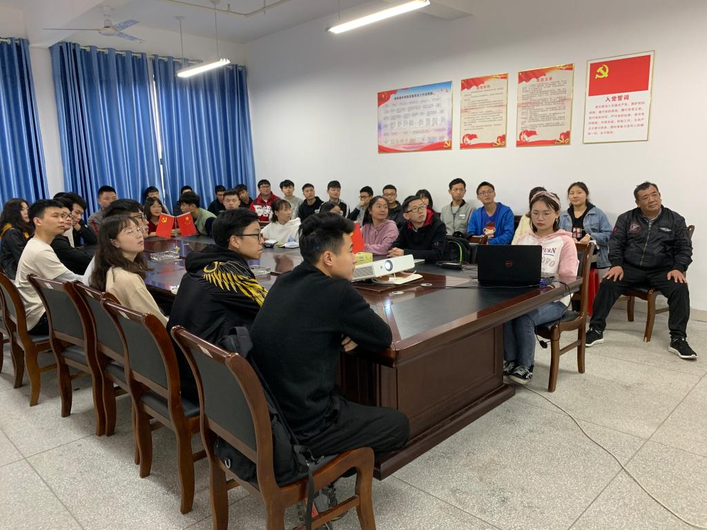 2019年4月30日上午10时30分,机械与电气工程学院组织观看“纪念五四运动100周年的”直播的活动。机械与电气工程学院党总支副书记刘辉老师、院团委书记段虹伶老师及院部分干部和学生。